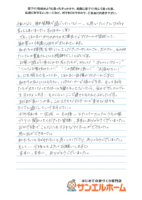 夢のまた夢と思っていたマイホームをかなえてくださり、ありがとうございます。サンエルホームさんとで敢えてよかったです。