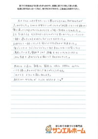 沢山ご迷惑をかけることも多々ありましたが、サンエルさんで建てて良かったと心から思っています。ありがとうございました。