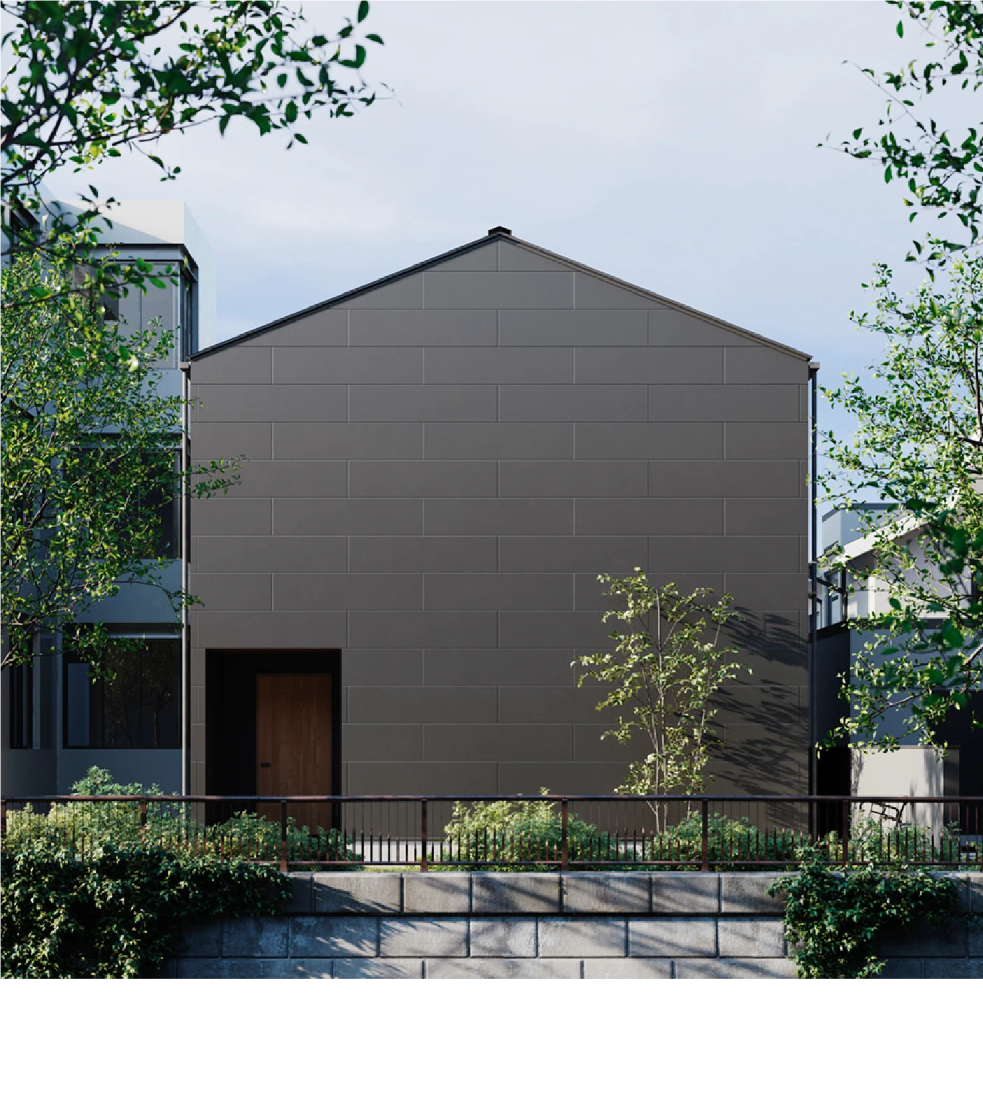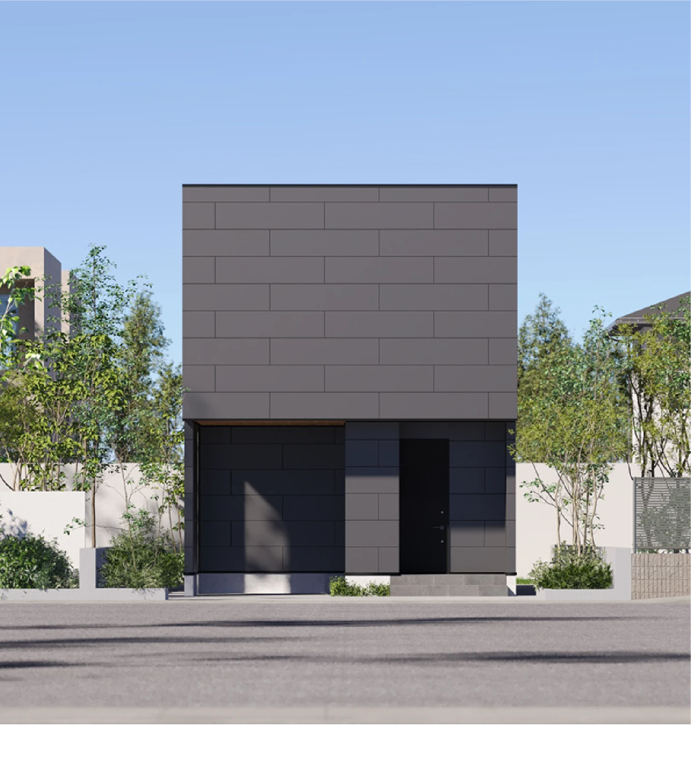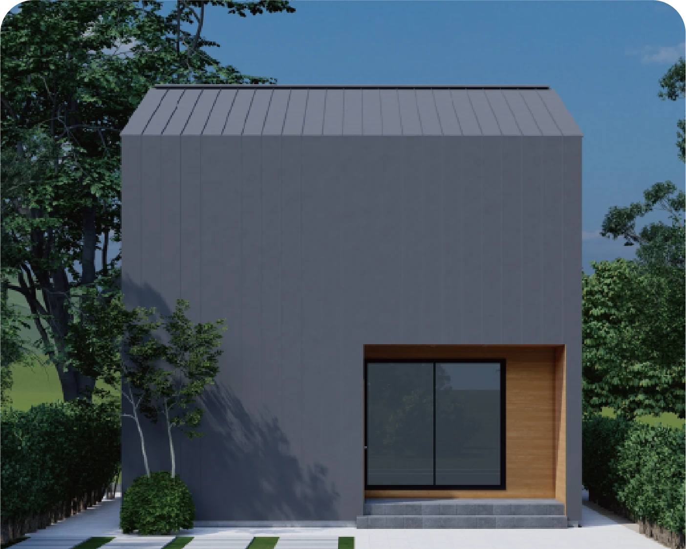 横方向に半分ずつずらす貼り方のことを『馬目地」といいます。由来は馬の足跡のように交互になっているところから。外壁材を「馬目地」張りにすることで、他には見られない特徴のある外観を演出します。