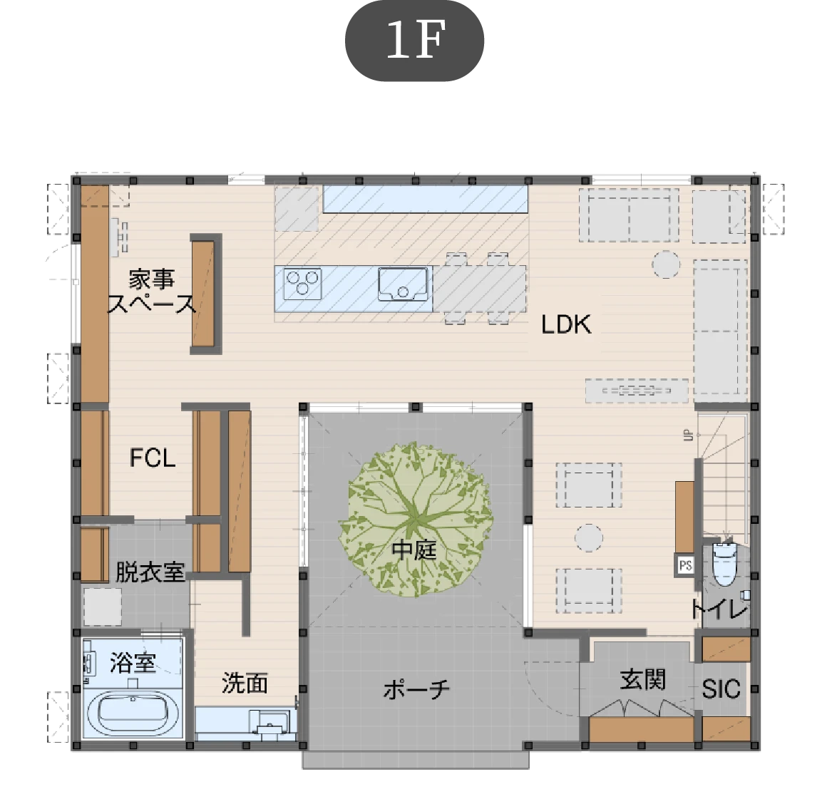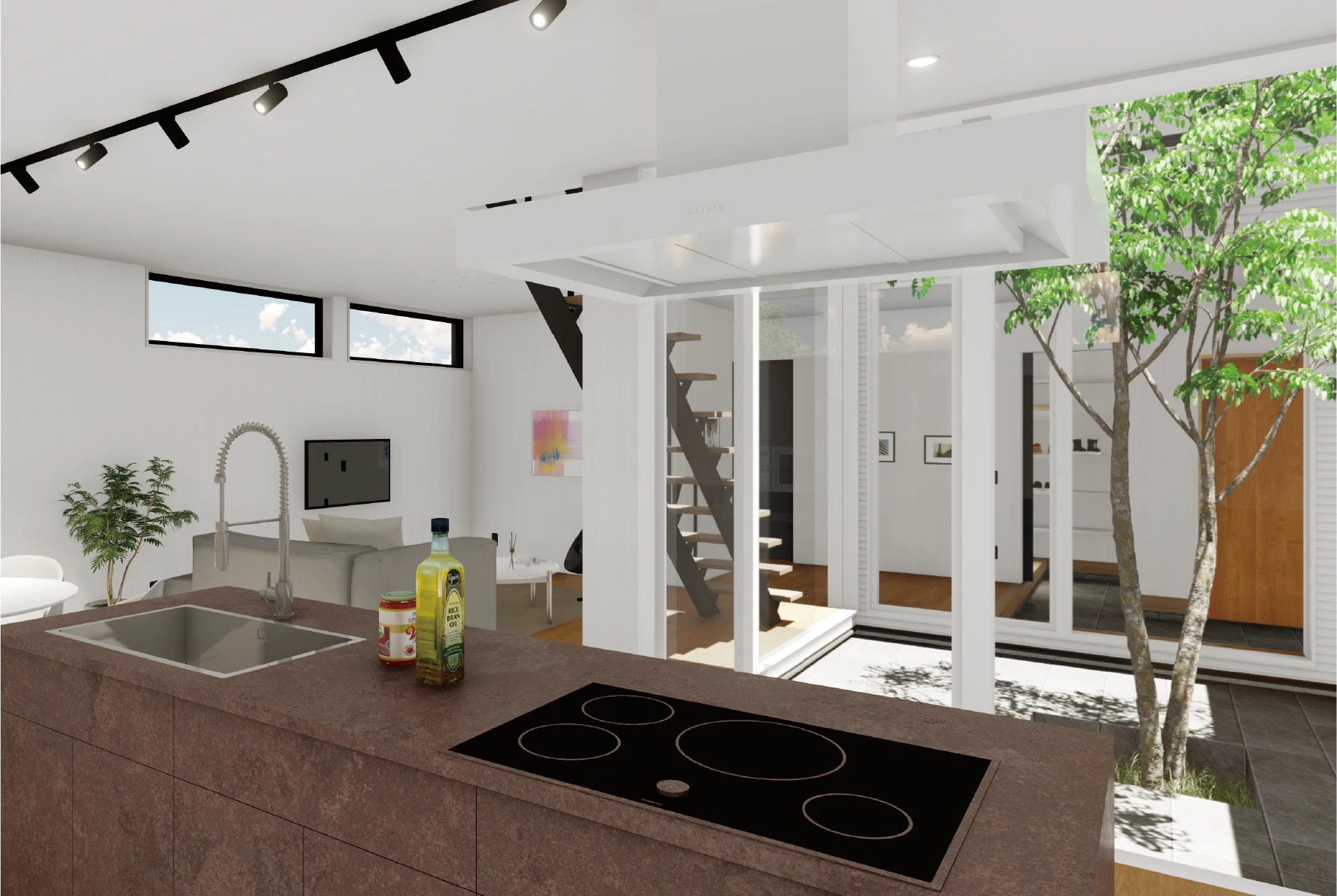 家の中心に設けた明るい中庭が、