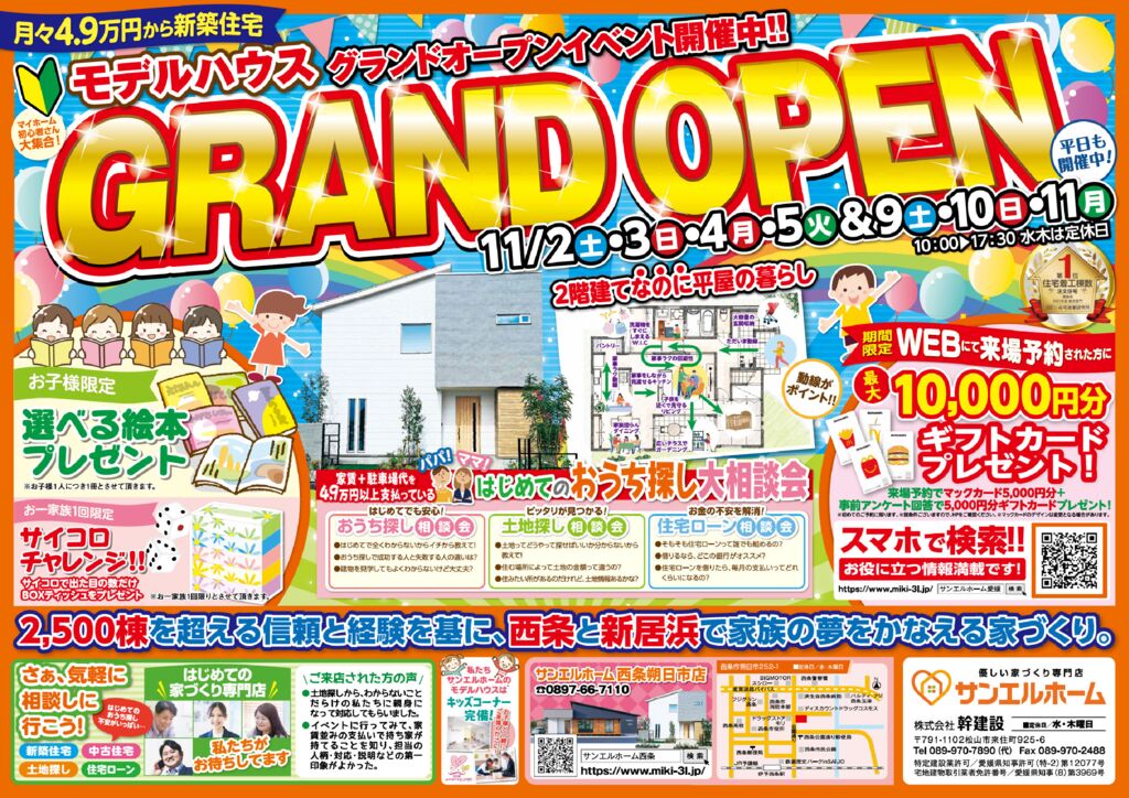 【GRANDオープン!!】30分で平屋と2階建て両方見学!!期間限定❗マックカードプレゼント✨
