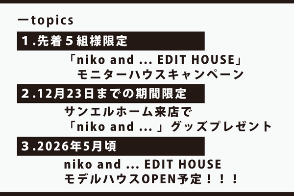 3.2026年5月頃|niko and ... EDIT HOUSE モデルハウスOPEN予定!!!
