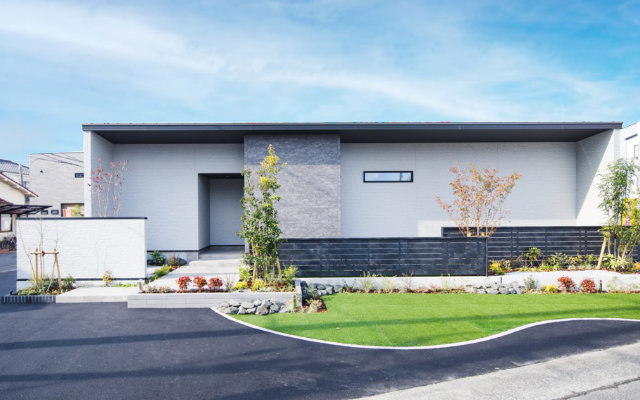 人気の平屋が完成しました!プライバシーに配慮した玄関配置と緑に囲まれたアプローチが見どころです♪