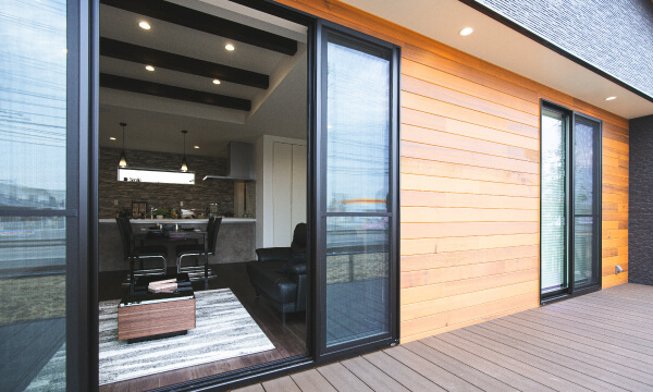 リビングから出入りできる広々ウッドデッキは、外部との繋がりを生み、室内に心地よい光と風を届けます。青空を眺めながらコーヒーを飲んだり、お友達を呼んでBBQを楽しんだり…素敵な毎日にちょっとした贅沢を♩