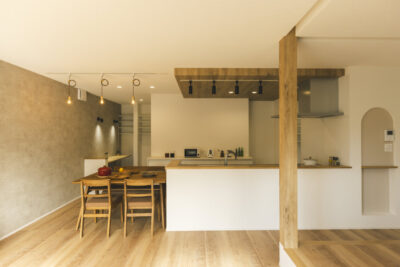 好きが詰まった照明や壁紙は1日の疲れも癒し、家族の会話が弾む横並びダイニングには自然と家族が集まり、家族時間が充実します。
