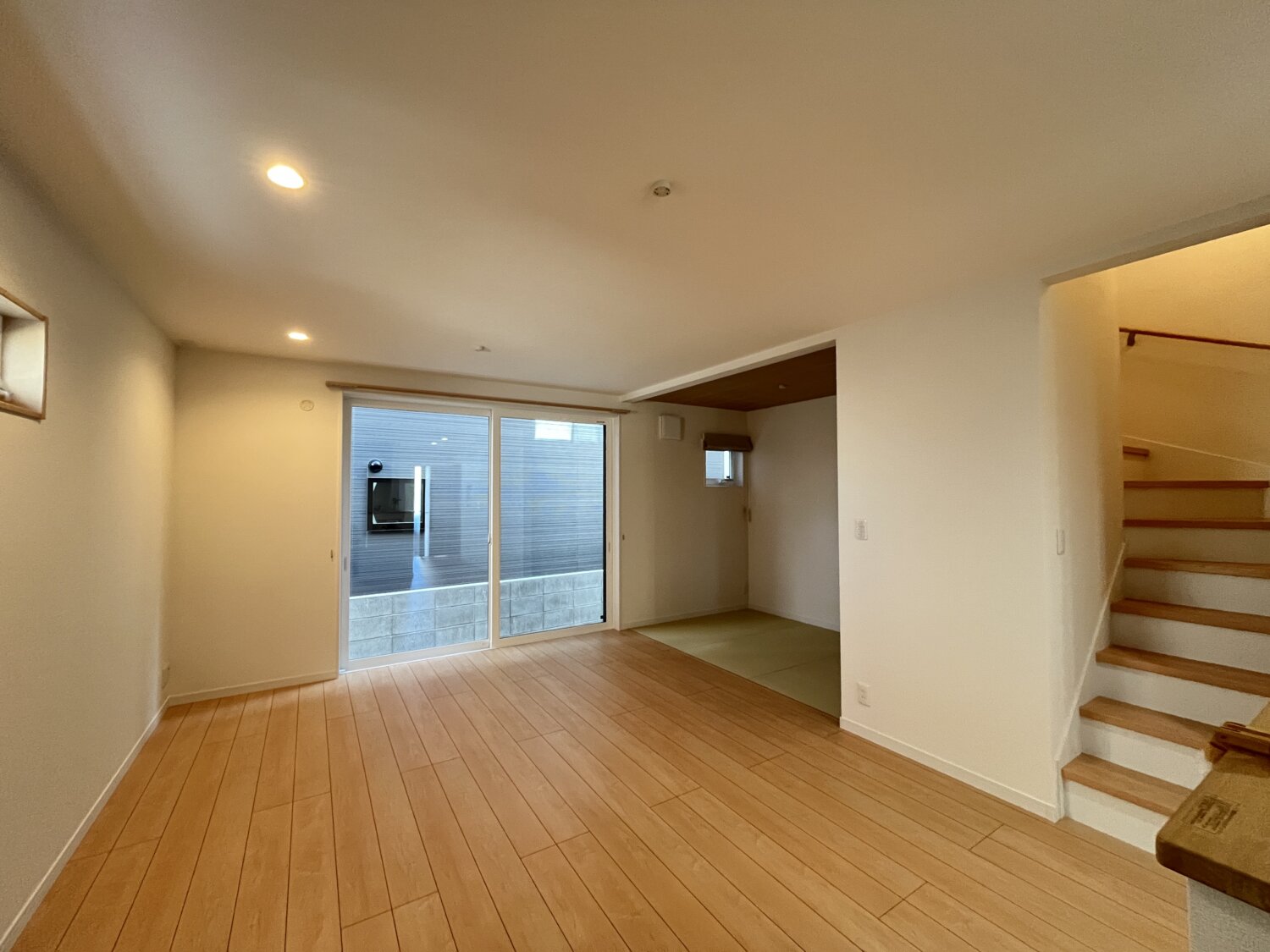 ただいまと同時に顔を合わせられるキッチンの配置や、落ち着きのある畳スペースが、家族のふれあいを自然と生み出します。
