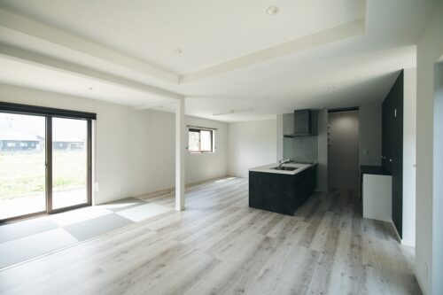 L字に広がるLDKは家族が自然と集まる空間です。 -