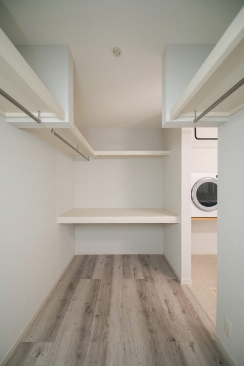 洗面脱衣室の隣に設けた大容量ファミクロ。