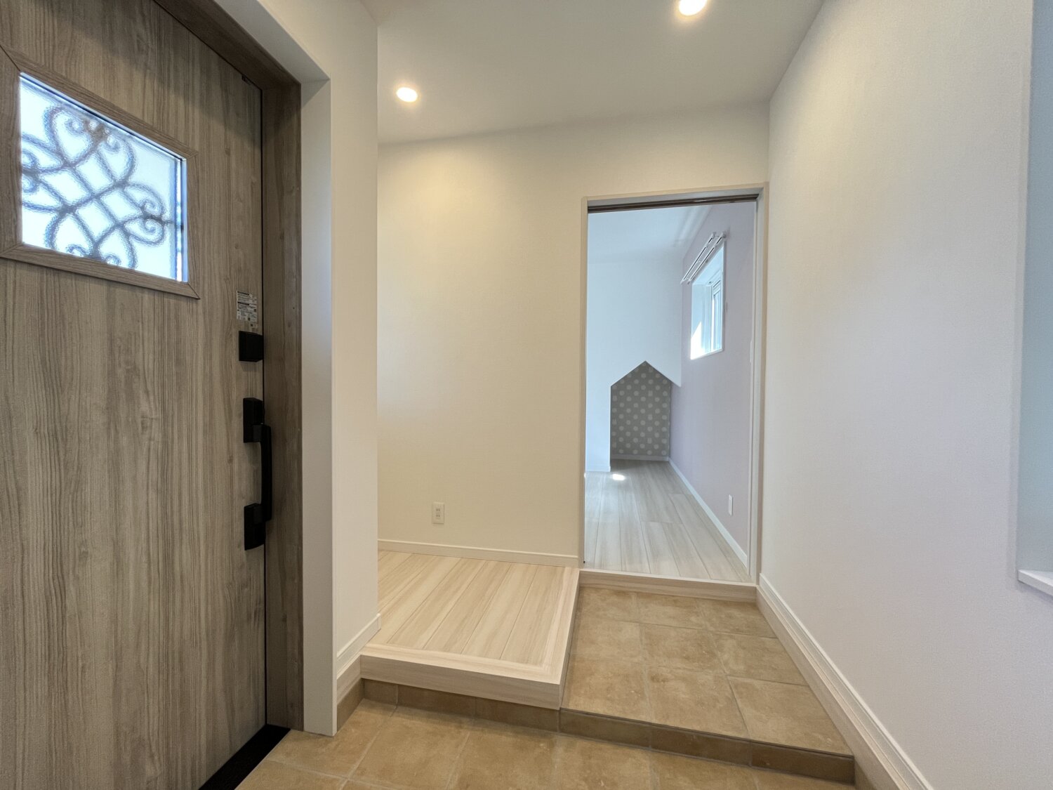 広々とした玄関は“ただいま”の瞬間を気持ちよく迎えてくれる場所。ベビーカーやアウトドア用品もラクに置けるから、子育て世代にもうれしい余裕のある空間です。