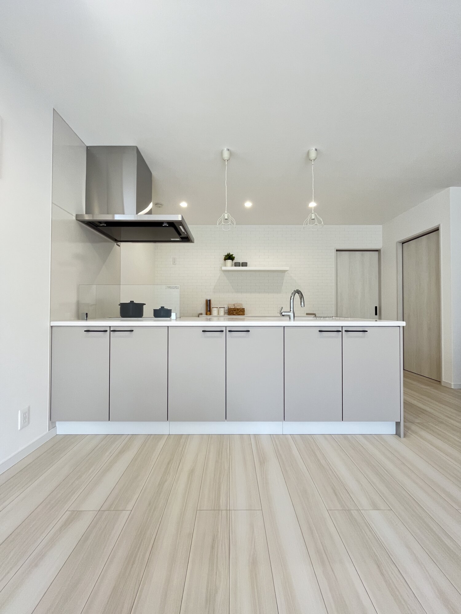 やわらかな光に包まれたリビング。家族が自然と集まりたくなる心地よさが広がります。キッチンから全体を見渡せるから、料理中も会話が途切れず、笑顔が絶えない暮らしが叶います。