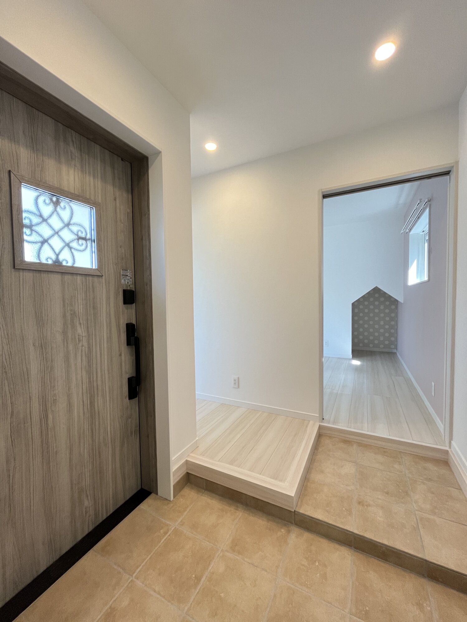 一つ段差が挟まることで、靴を履く動作が簡単になります。一つは洋室へ向かう動線に。