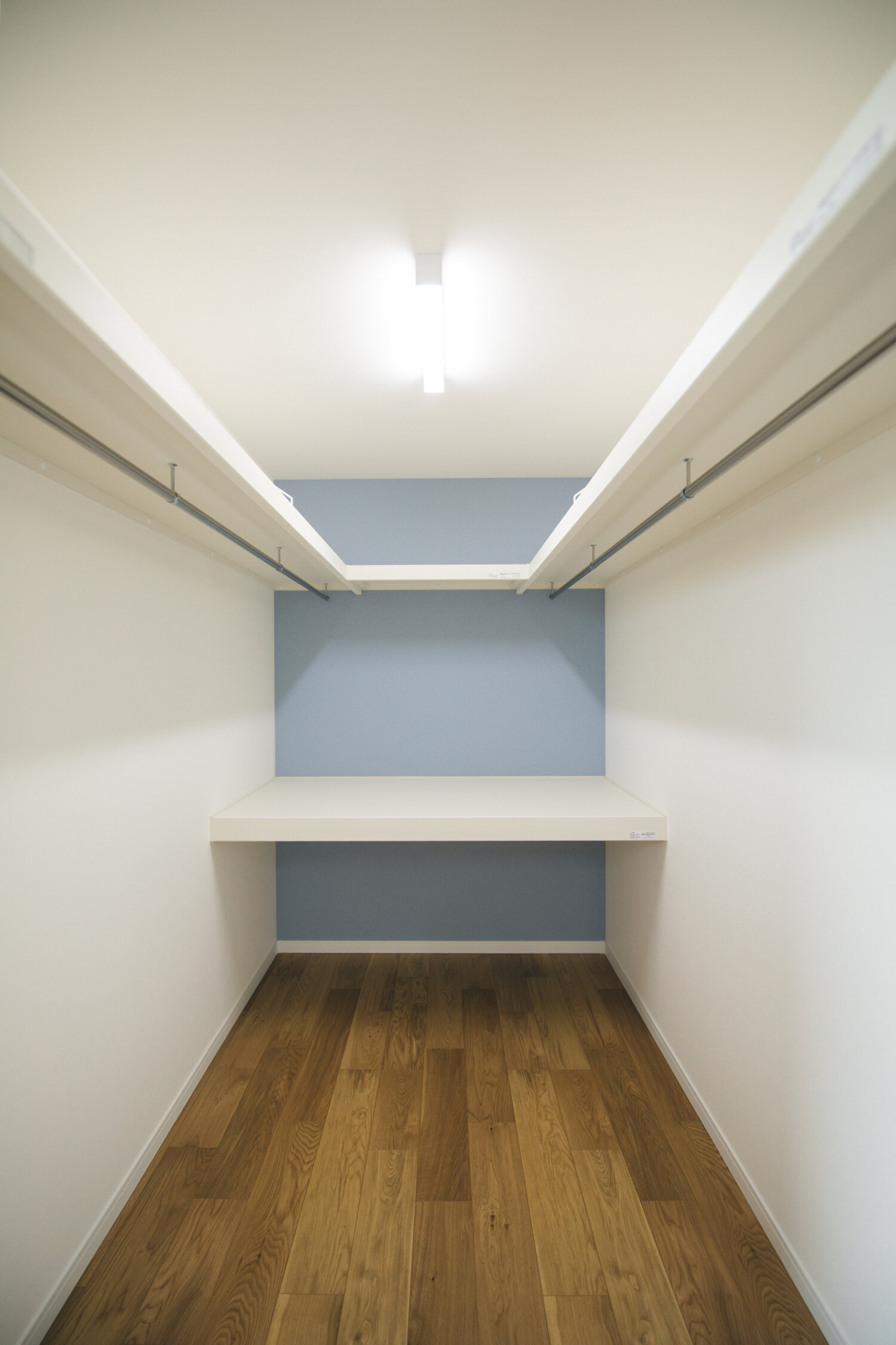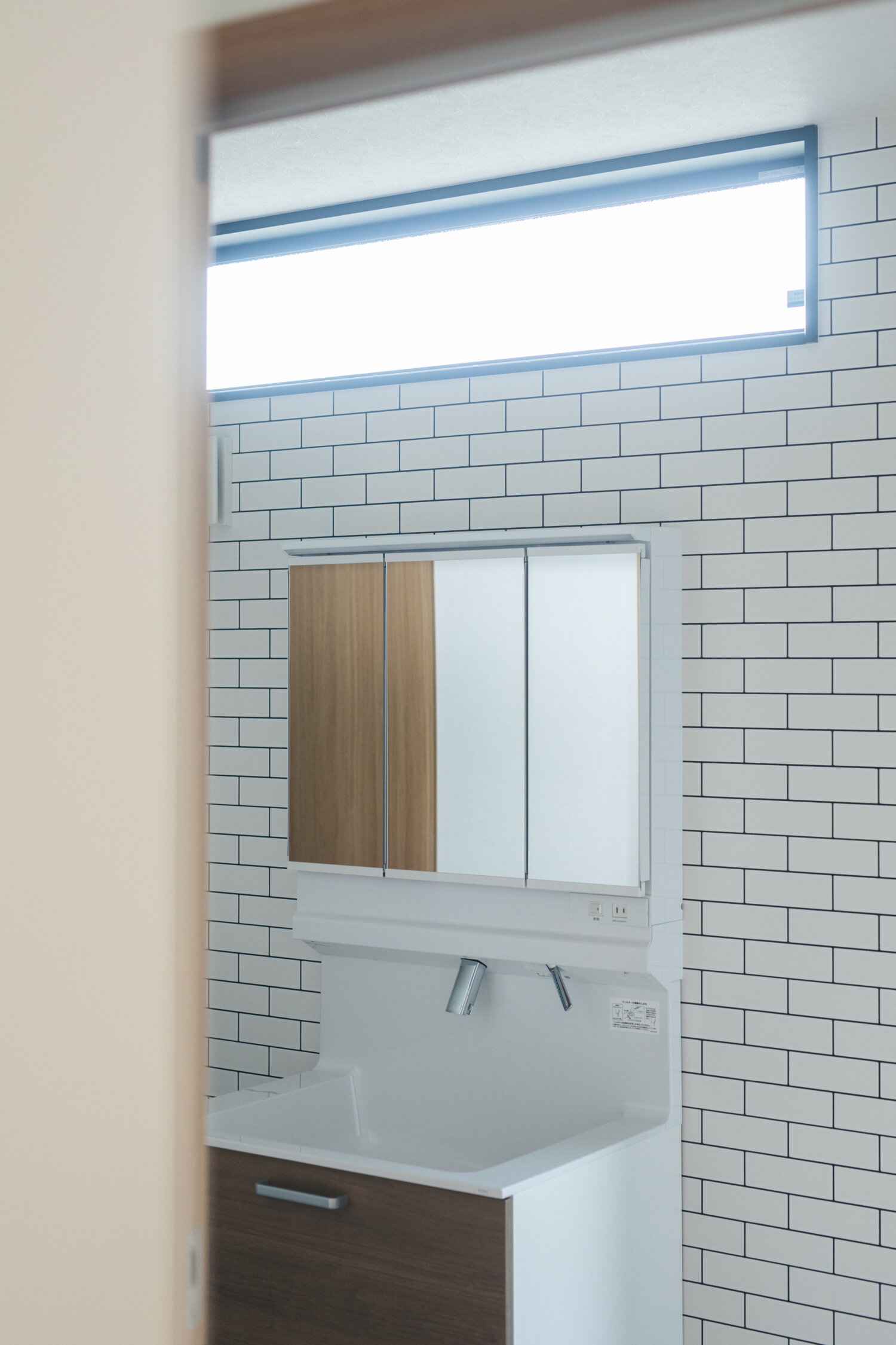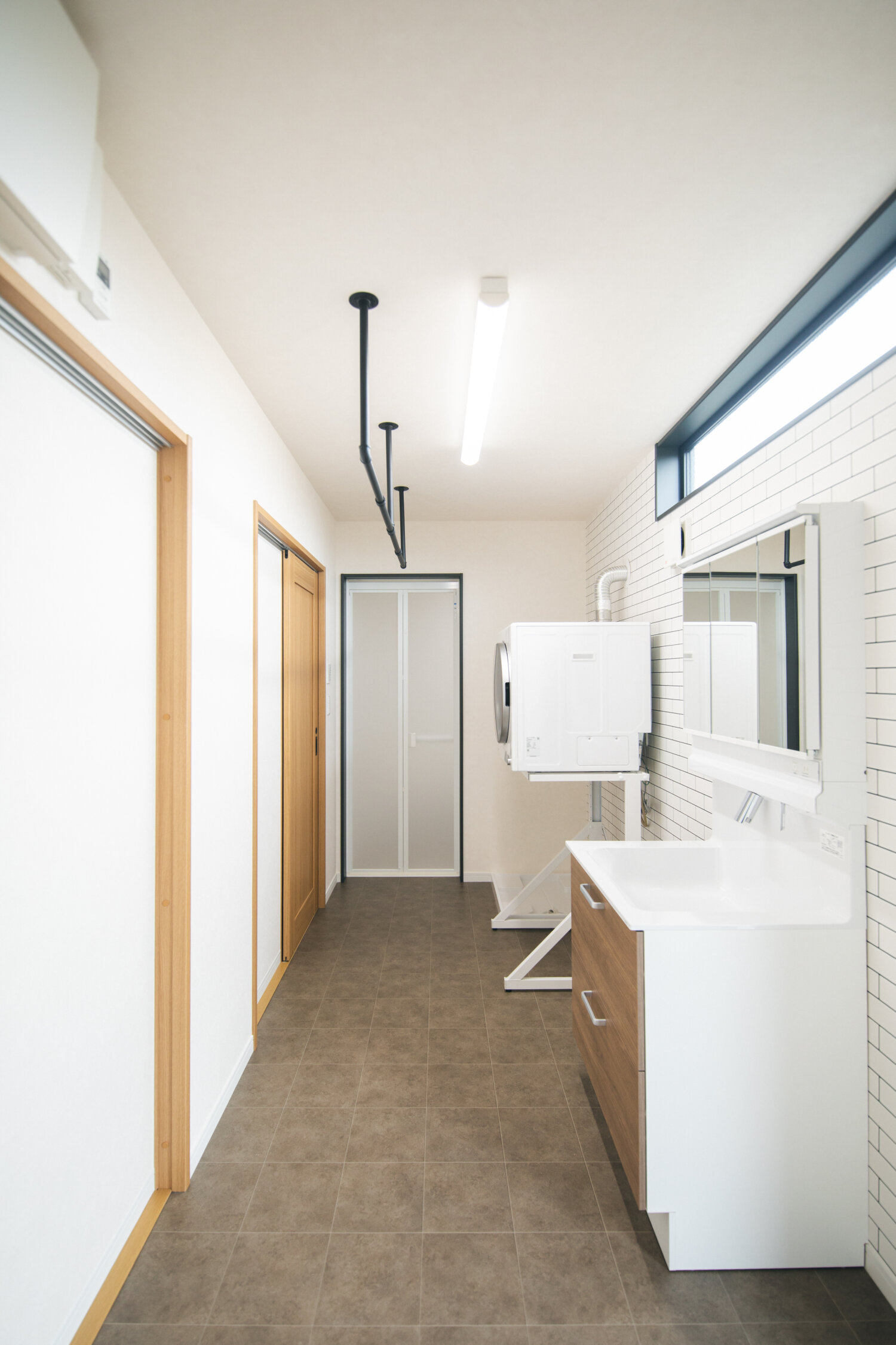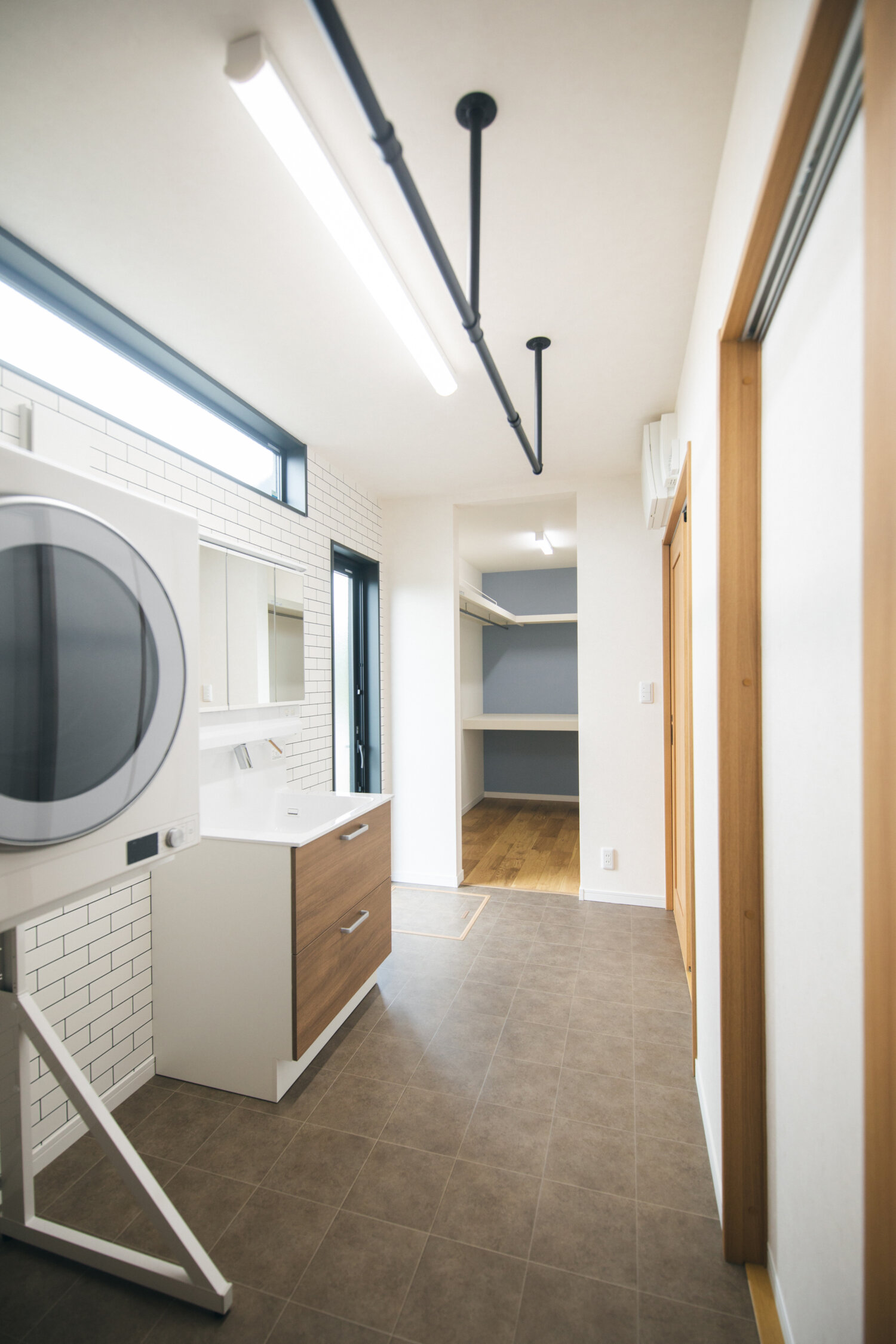 洗う・干す・しまうが一直線に完結する、家事ラク動線。洗面室からそのままファミリークローゼットへつながるレイアウトで、毎日の家事がスムーズに。