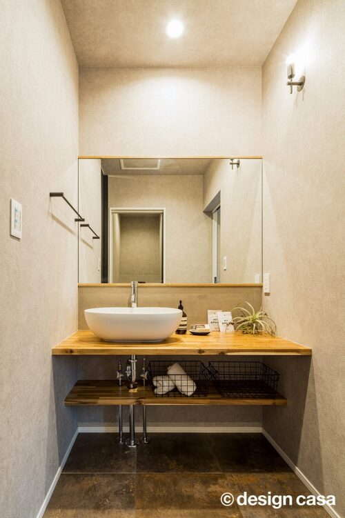 リビングからの動線を意識した水まわり空間。スタイリッシュな雰囲気で統一しています。